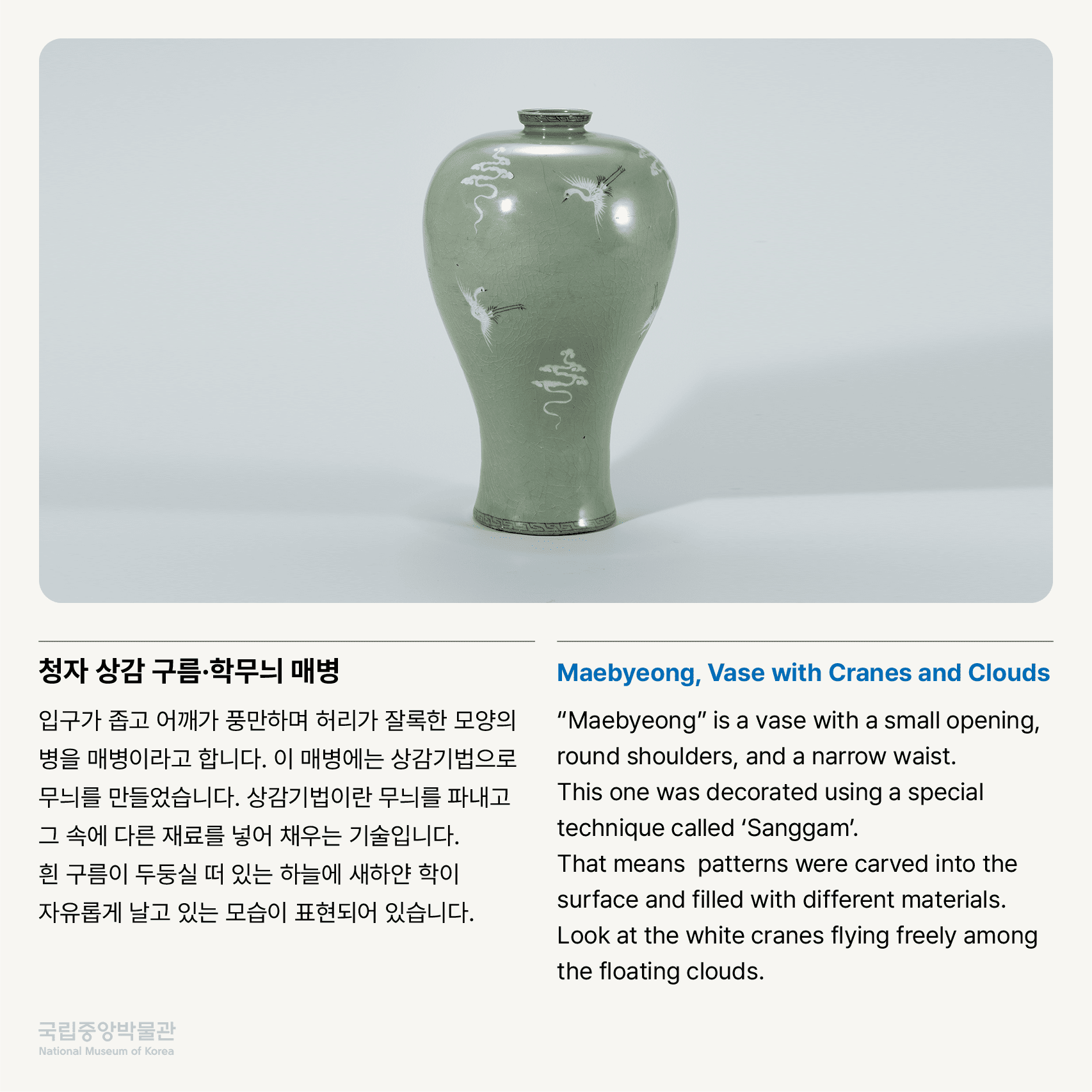 | 어린이박물관 '시간 여행 안내소' 감상자료_청자 상감 구름·학무늬 매병 | |