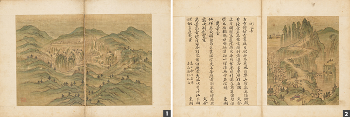 Hence, the paintings in Album of Geumgangsan Mountain have a complementary relationship, with Comprehensive View of Inner Geumgang depicting the entire area and the other paintings providing magnified and detailed views of certain sections of Comprehensive View of Inner Geumgang. A similar complementary relationship can be seen between the works in Album of Scenic Views of Hamgyeong-do Province (北關酬唱錄) by Han Sigak (1621–after 1691), which was painted about half a century earlier.